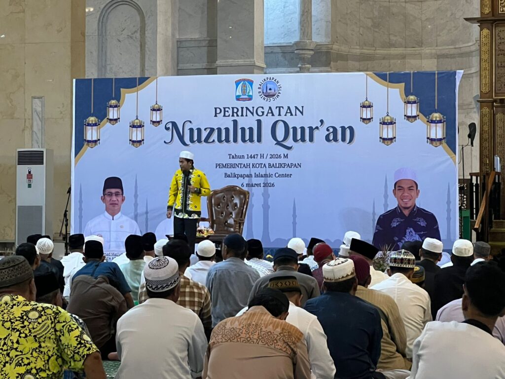 KALTIM HUB, BALIKPAPAN — Wali Kota Balikpapan Rahmad Mas’ud menghadiri Safari Ramadan yang dirangkaikan dengan peringatan Nuzulul Quran di Masjid Madinatul Iman Balikpapan Islamic Center (BIC), Jumat (6/3/2026). Dalam kegiatan tersebut, pemerintah kota menyalurkan hibah pembangunan masjid serta memberikan penghargaan kepada para penghafal Al-Qur’an asal Balikpapan.
